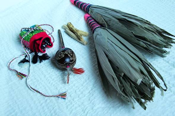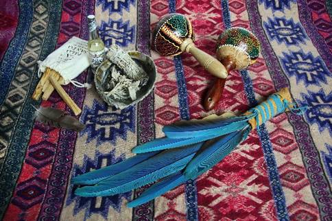 Your altar is created by placing down a piece of cloth, along with some natural objects found in nature that mean something to you (leaves, pinecones, stones, shells, crystals, feathers, dried fruits etc.), along with incense, flowers, and a candle. You then need to cleanse your energy field by smudging yourself with a sacred herb of your choice (white sage, palo santo, cedar, eucaliptus, lavander, etc.). You also need some type of rattle or drum as you get ready for the ceremony in a meditative state.